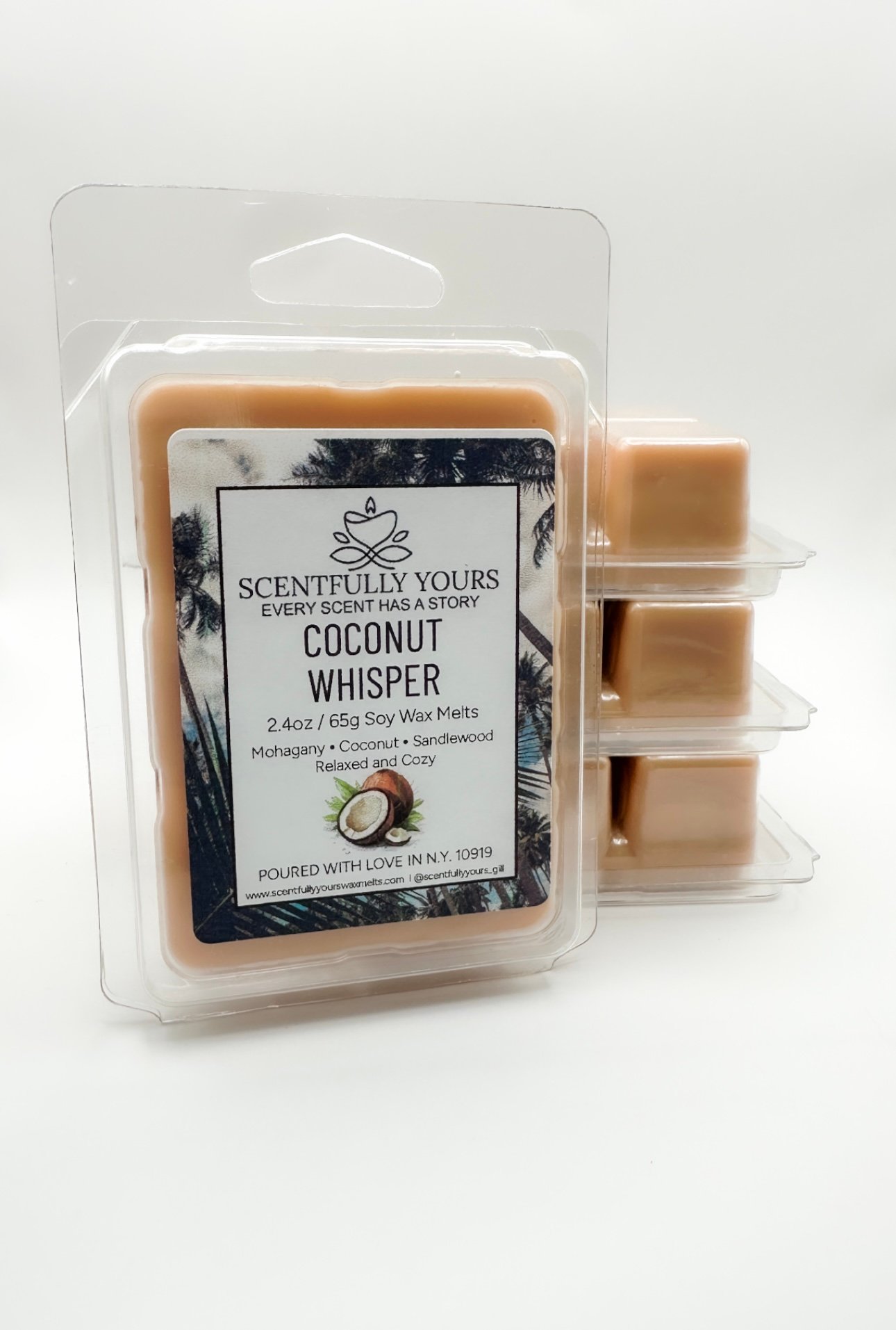 As the wax melts, I’m transported to a secret tropical island, a hidden gem where I can escape, unwind, and let the world fade away. The creamy coconut quickly brings me back to a cool tropical breeze blowing on my face and warm woodsy mahogany, wrapping around me, soothing every nerve and melting away the days stress.