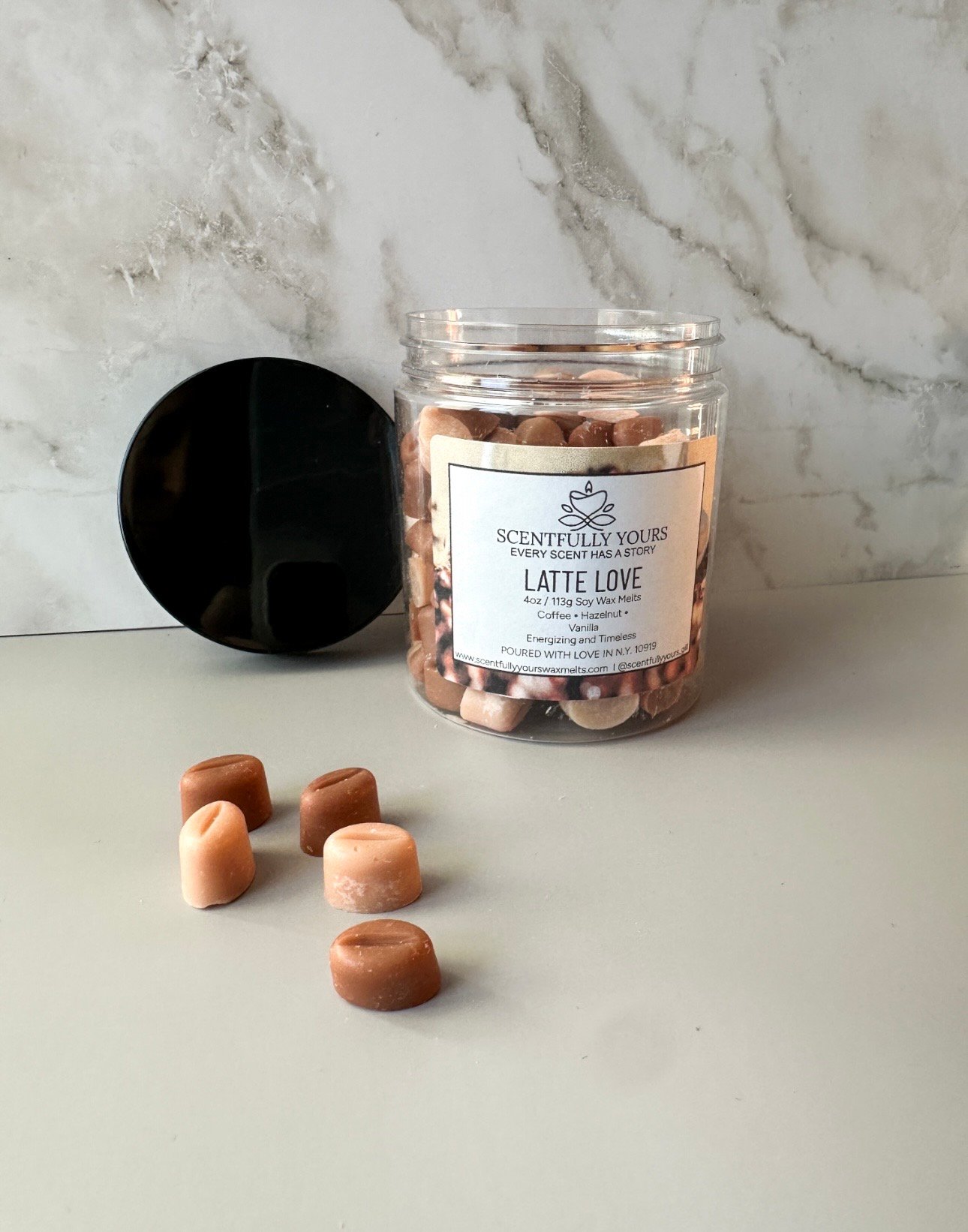4 oz Jar – a surprise of mini or large hearts, or coffee bean shaped wax melts